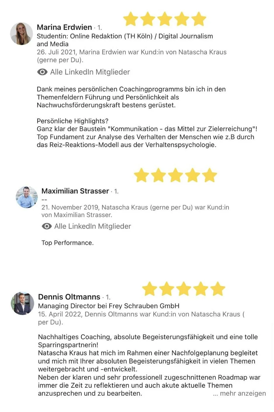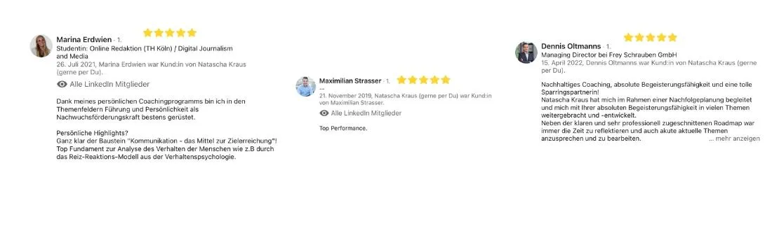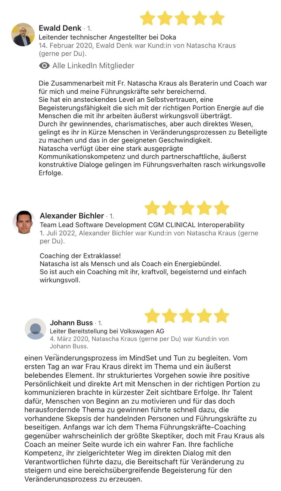 ⭐️⭐️⭐️⭐️⭐️ Natascha Kraus ist zertifizierte Business Coach, Personal Coach, psychologische Beraterin, Change Agent und Gründerin von „GROW BEYOND YOUR LIMITS“.
